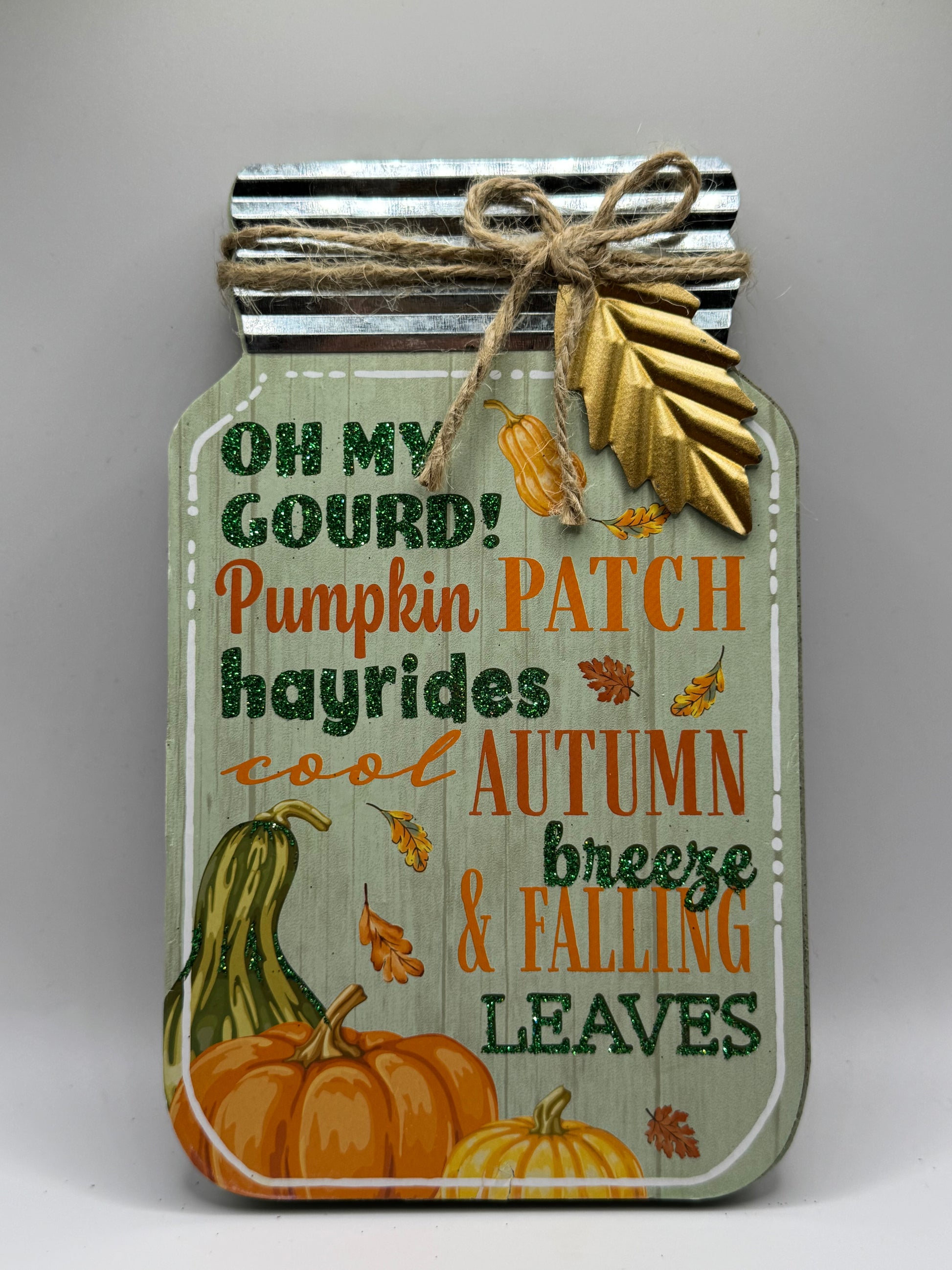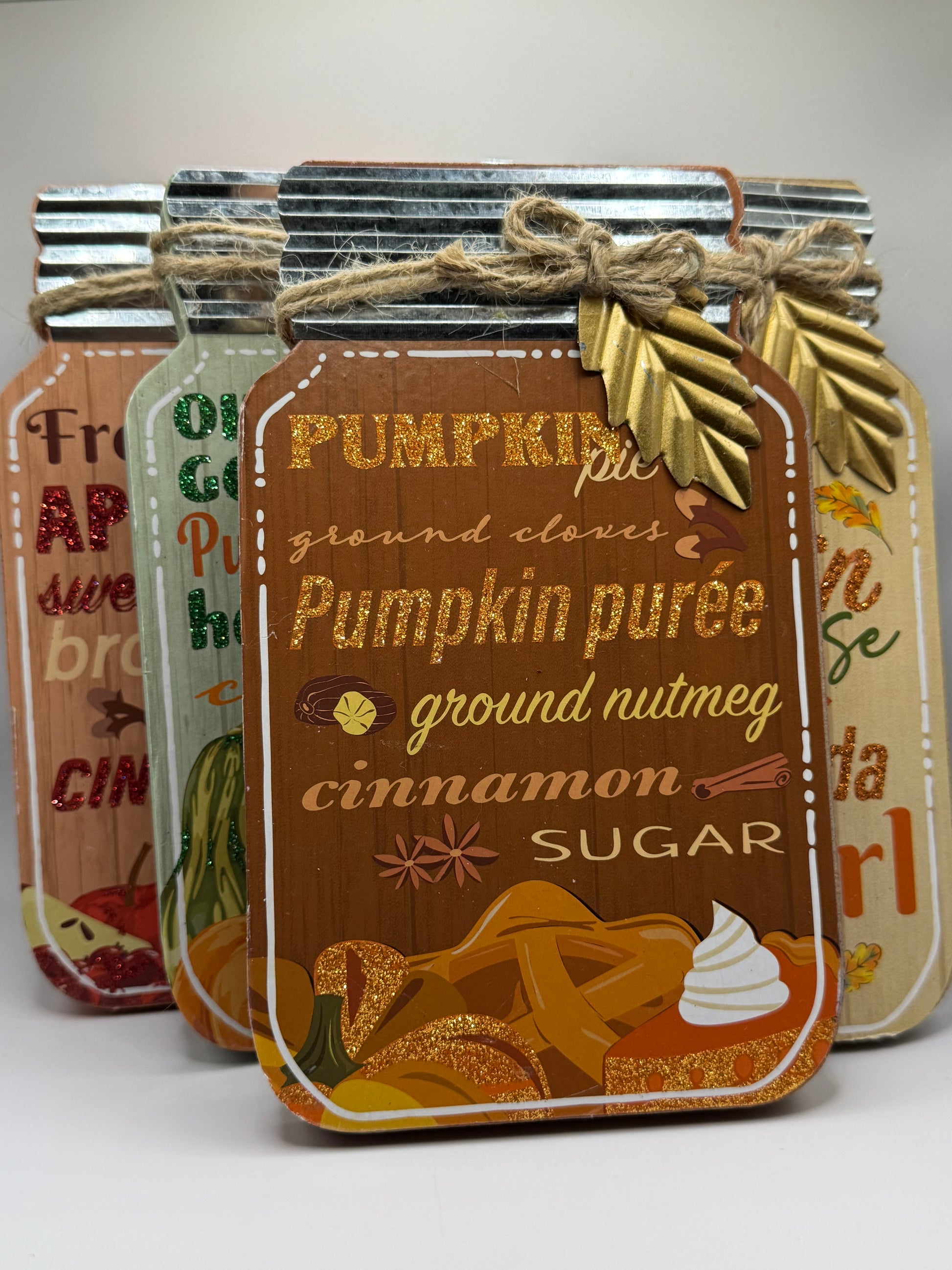 Πρωτότυπο ξύλινο διακοσμητικό σε σχήμα μπουκαλιού με μεταλλική λεπτομέρεια σε χρυσό φύλλο σε 4 Φθινοπωρινά σχέδια τυχαίας επιλογής.